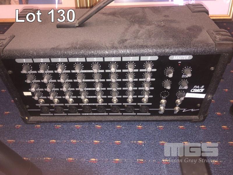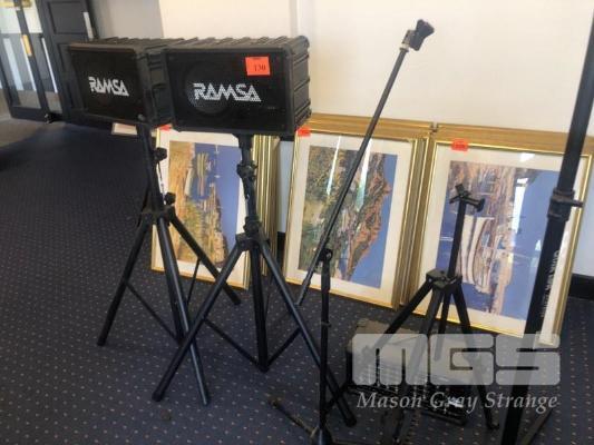 2 x RAMSA SPEAKERS ON TRIPOD STANDS, WITH CRATE PA8 AMP, MIC STAND, MUSIC STAND, TRIPOD