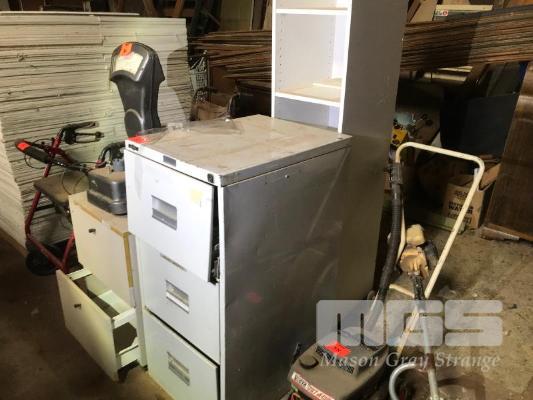 2 x UNDERDESK MOBILES, UPRIGHT SHELF UNIT & 3 DRAWER FILING CABINET