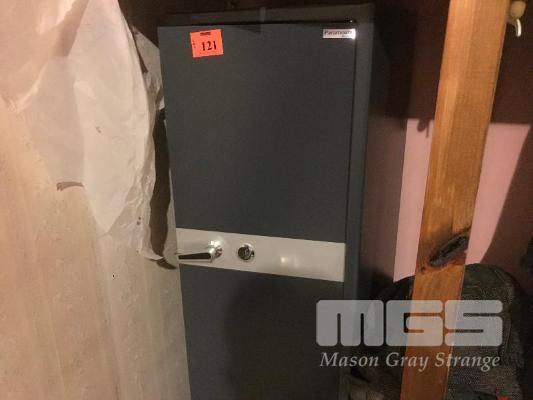UPRIGHT GUN SAFE, PARAMOUNT BROWNS, SINGLE DOOR, KEY TYPE WITH GUN RACK INTERNALS & AMMUNITION COMPARTMENT