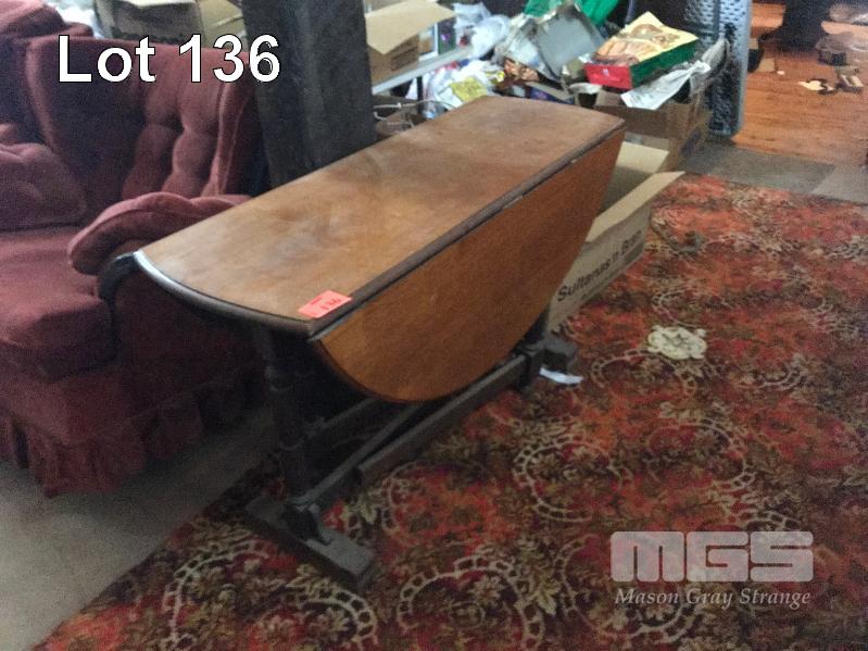 ANTIQUE DROP SIDED CIRCULAR DINING TABLE, STRETCHER BASE