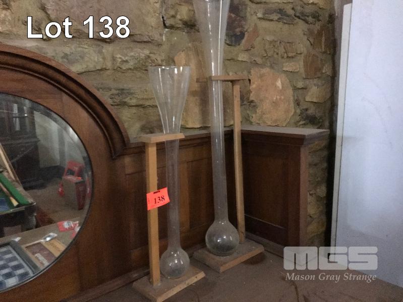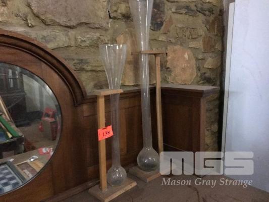 2 X YARD GLASSES ON TIMBER STANDS