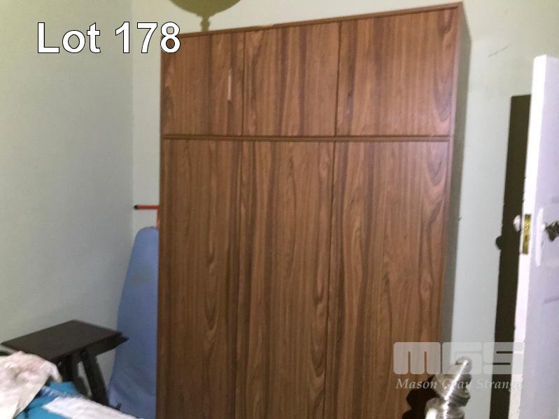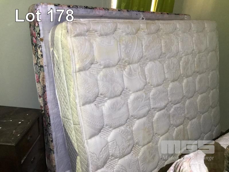 WOODGRAIN LAMINATE WARDROBE, PEDESTAL, WROUGHT IRON KING SINGLE BED, DOUBLE BED ENSEMBLE BASE & MATTRESS, MIRROR BACK WINGED DRESSER, BEDROOM CABINET, 2 x ARM CHAIRS, DECO STYLE & SPADE BACKED DINING CHAIR