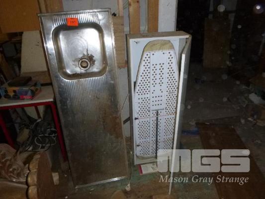 STAINLESS STEEL SINGLE BOWL SINK WITH RIGHT HAND DRAIN & WHITE LAMINATE IRONING BOARD CABINET