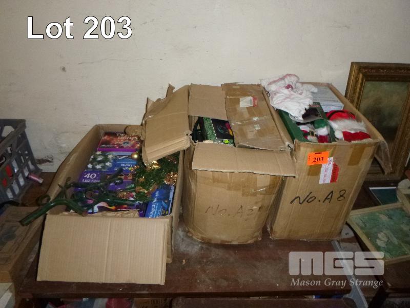 ASSORTED CHRISTMAS DECORATIONS, FIBRE OPTIC & LED LIGHTS, ETC