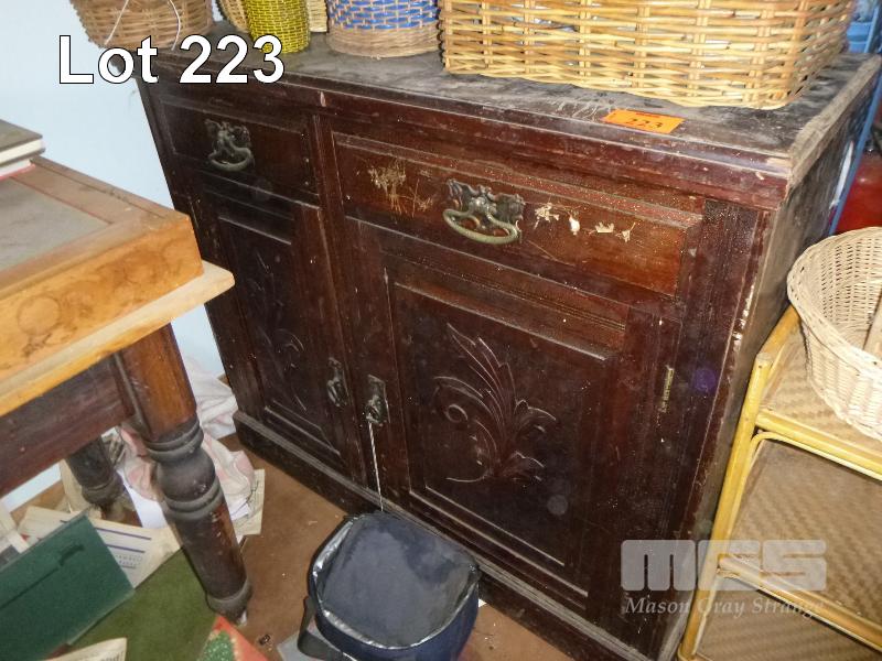 CARVED TIMBER FRONTED 2 DOOR SIDEBOARD