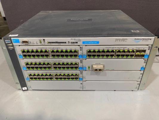 HP PROCURVE 4208vl SWITCH, J8773A WITH 2 x PSU, MODULES INC. 3 x J8768A, 1 x J9033A, 1 x J8766A (NO CABLES) S/N:SG843VBH3U