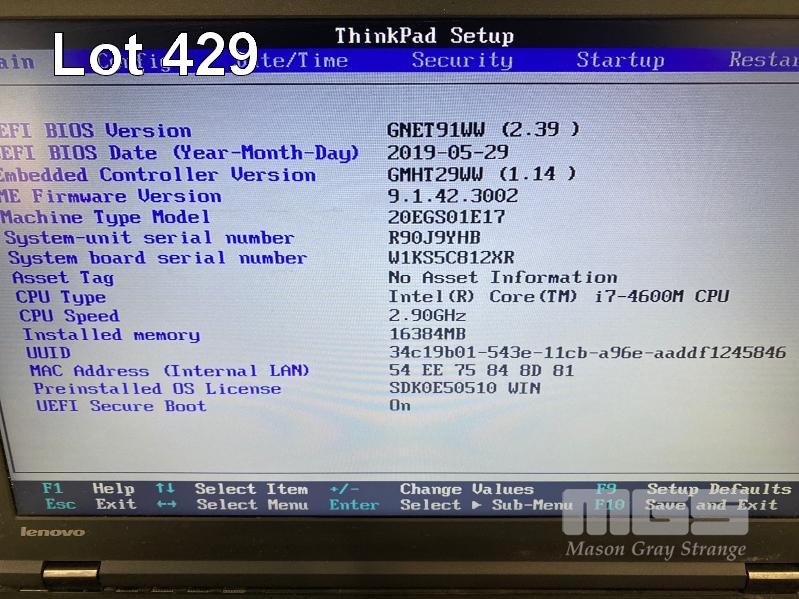 LAPTOP, LENOVO THINKPAD W541 (20EGS01E17), CORE i7 4600M (4TH GEN) @ 2.9GHz, 16GB DDR3 RAM, 525GB SSD, DVD-RW, 15.6" WIDESCREEN (1920x1080), INTEL HD VIDEO, 2GB NVIDIA QUADRO K1100M VIDEO, Wi-Fi, BLUETOOTH, WINDOWS 10 PRO INSTALLED & POWER SUPPLY (NOTE: MARKS ON SCREEN) S/N:R90J9YHB