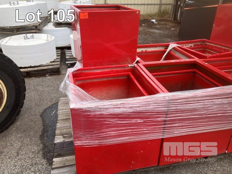 8 x RED FIBREGLASS PLANTER BOXES, 70 x 70 x 70cm & 60 x 60 x 60cm