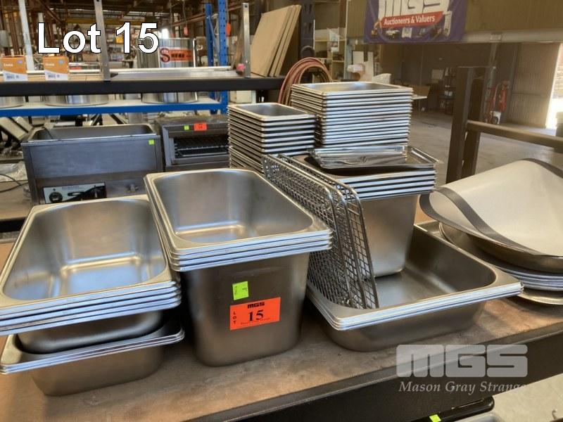 50 x STAINLESS STEEL FULL SIZE GASTRONORM PANS, ASSORTED SIZES