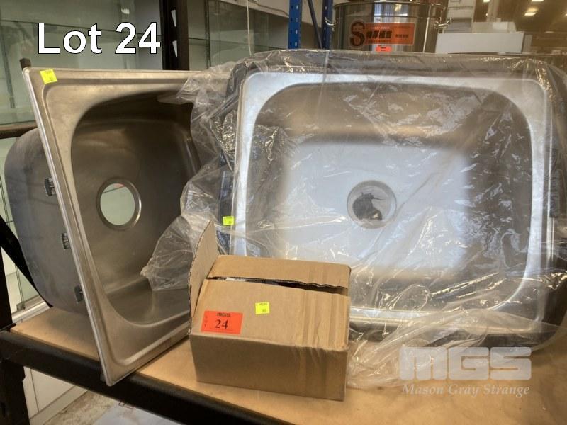 2 x STAINLESS STEEL LAUNDRY TROUGHS, APPROX 60 x 50cm