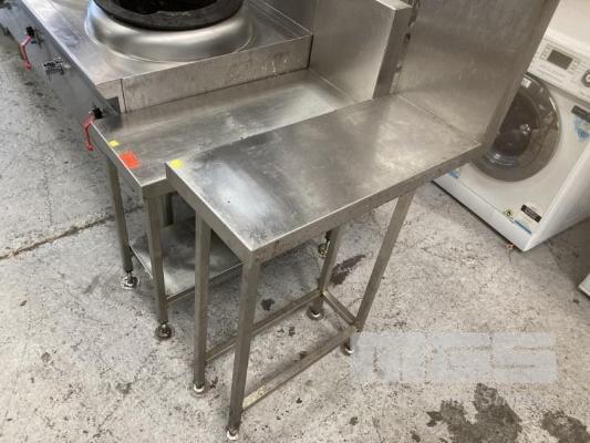 2 x STAINLESS STEEL INFILL BENCHES, 30 x 73cm WITH SPLASHBACK