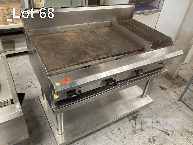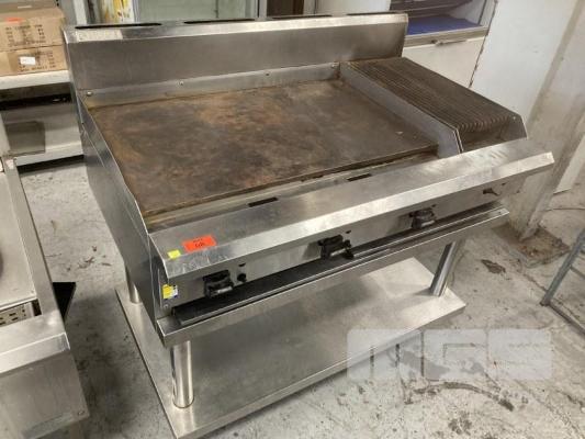 COMBINATION GRIDDLE PLATE/CHAR GRILL, LUUS 4 BURNER, 120cm, GAS (MISSING 1 x KNOB & DRIP TRAY)