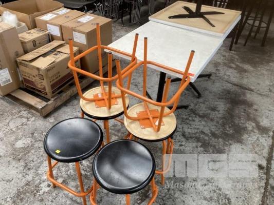 3 x CAFE TABLES, 70 x 70cm, MOULDED TOP & 6 x LOWLINE STOOLS