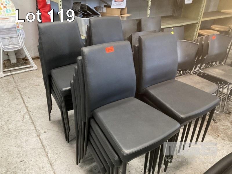 20 x DINING CHAIRS, BLACK VINYL, STEEL FRAME