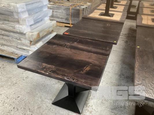 8 x DINING TABLES, 70 x 70cm, RUSTIC TIMBER TOP, PEDESTAL BASE