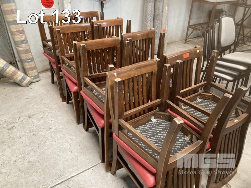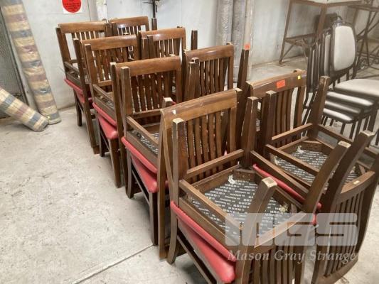 16 x DINING/CAFE CHAIRS, TIMBER FRAME, RED VINYL PADDED SEAT