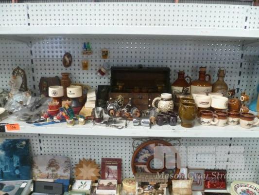 ASSORTED BARWARE INC STONEWARE JUGS & CUPS, DECANTER SET, CUTLERY, ETC
