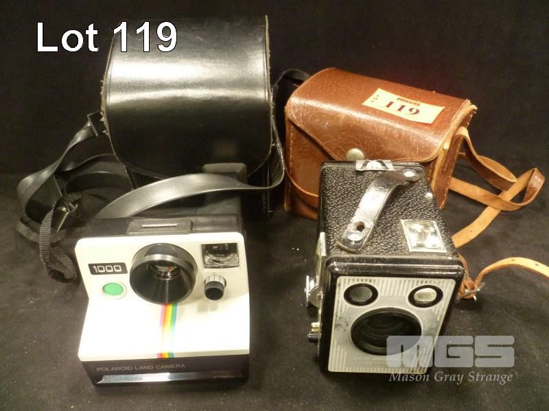 BROWNIE SIX-20 E BOX CAMERA WITH BAG & POLAROID 1000 LAND CAMERA
