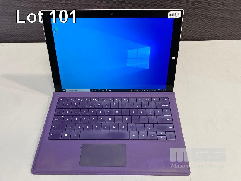 TABLET PC, MICROSOFT SURFACE PRO 3, MODEL 1631, CORE i5 4300U (4TH GEN) @ 1.9GHz, 8GB RAM, 256GB SSD, 12" TOUCHSCREEN, Wi-Fi, WINDOWS 10 PRO INSTALLED, KEYBOARD TYPE COVER & POWER SUPPLY S/N:004698145063