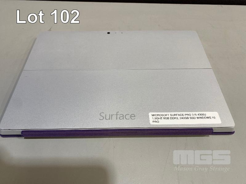 TABLET PC, MICROSOFT SURFACE PRO 3, MODEL 1631, CORE i5 4300U (4TH GEN) @ 1.9GHz, 8GB RAM, 256GB SSD, 12" TOUCHSCREEN, Wi-Fi, WINDOWS 10 PRO INSTALLED, KEYBOARD TYPE COVER & POWER SUPPLY S/N:059216543653