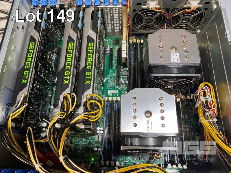 RACKMOUNT SERVER, XENON NITRO T6 (SUPERMIRCO 747-16), 4U, 2 x XEON E5-2640 v2 (8-CORE) @ 2GHz, 64GB ECC DDR3 RAM, 2 x 2TB SATA HDD, DVD-RW, 3 x 6GB ASUS GEFORCE GTX TITAN BLACK VIDEO CARDS, 10-GIGABIT ETHERNET CX311A, 2 x PSU WITH RAILS (NOTE: FAULTY, POWERS ON, NO DISPLAY TO SCREEN) S/N:14020-3B01