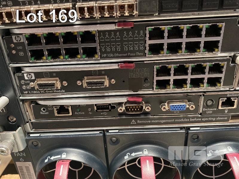 HP BLADESYSTEM c7000 ENCLOSURE WITH 4 x HP PROLIANT BLADE SERVERS - HP PROLIANT BL490c G7, 2 x XEON X5675 @ 3.06GHz, 96GB ECC DDR3 RAM (12x8), NO HDD WITH RAILS & 3 x 15A POWER CABLES S/N:SGH843YPT5