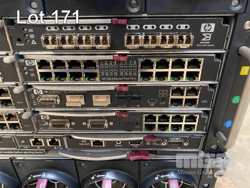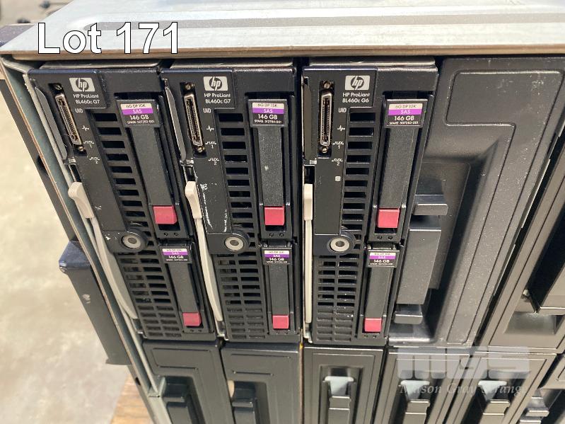 HP BLADESYSTEM c7000 ENCLOSURE WITH 3 x HP PROLIANT BLADE SERVERS - HP PROLIANT BL460c G7, XEON L5640 @ 2.26GHz, 12GB ECC DDR3 RAM, 2 x 146GB SAS HDD - HP PROLIANT BL460c G7, XEON E5640 @ 2.67GHz, 12GB ECC DDR3 RAM, 2 x 146GB SAS HDD - HP PROLIANT BL460c G6, 2 x XEON X5650 @ 2.67GHz, 48GB ECC DDR3 RAM, 2 x 146GB SAS HDD (NO 15A POWER CABLES) (MISSING 1 x PSU) WITH ASST SPARE MODULES & FILLERS S/N:SGH836YLV6