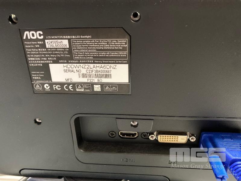 MONITOR, AOC e2450Swh 23.6" LED-BL LCD WIDESCREEN, HDMI, VGA, DVI (WITH DVI CABLE) S/N:C23F3BA000687