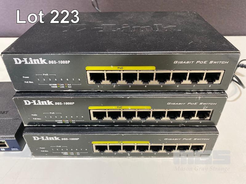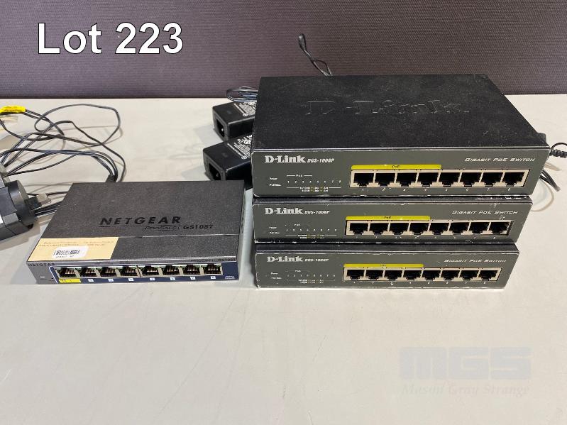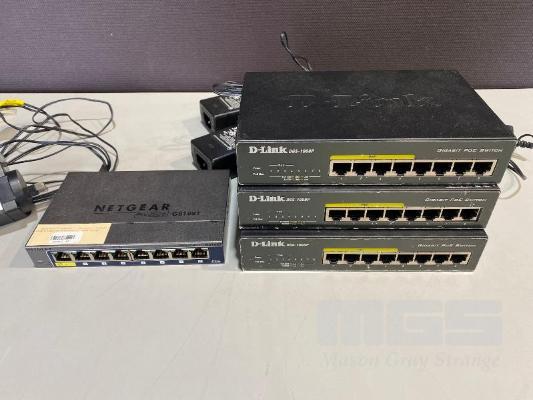 1 x NETGEAR PROSAFE GS108T 8-PORT SWITCH, 3 x D-LINK DGS-1008P 8-PORT SWITCHES