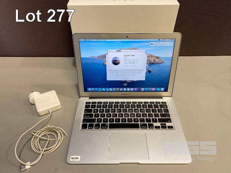 LAPTOP, APPLE MACBOOK AIR (A1466), CORE i7 5650U (5TH GEN) @ 2.2GHz, 8GB DDR3 RAM, 512GB SSD, 13.3" WIDESCREEN (1440x900), INTEL HD VIDEO, Wi-Fi, MAC OS 10.15 INSTALLED & POWER SUPPLY S/N:C1MQF0QZG944