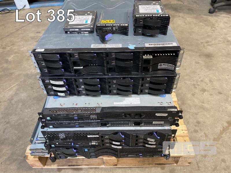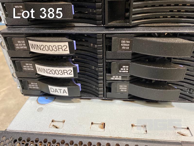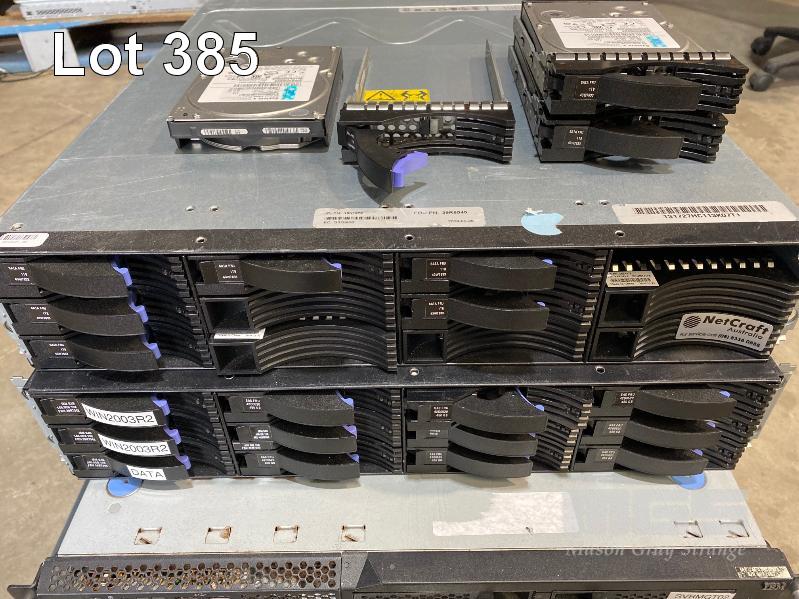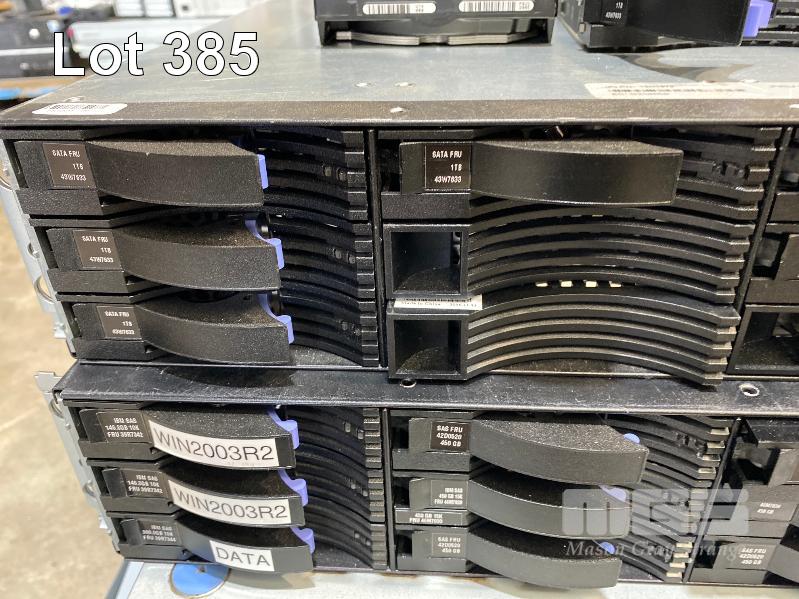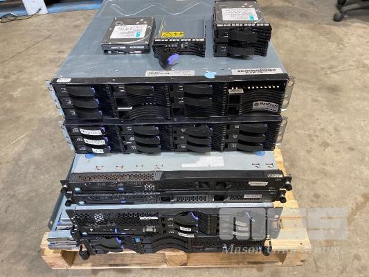 2 x IBM DS3400 STORAGE ARRAYS, VARIOUS HARD DRIVES INC. 1TB, 146GB, 300GB, 450GB, 2 x IBM SYSTEM x3250, XEON SERVERS, 1 x IBM SYSTEM x3650 XEON SERVER, 1 x IBM xSERIES 346 XEON SERVER (NO CABLES) S/N:99A1607, 99A1583, 99C7246, 99DCWD4