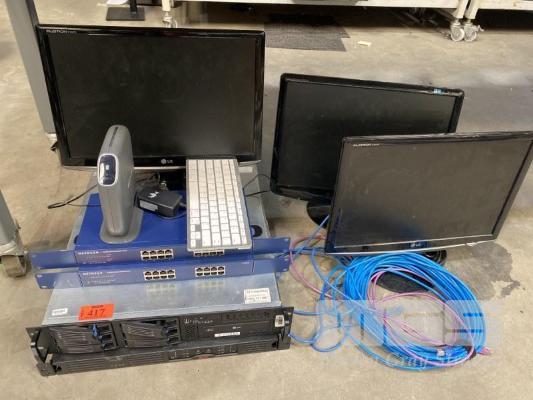 RACKMOUNT PC, CORE 2 DUO E7500 @ 2.93GHz, 8GB RAM, 320GB HDD, 2 x NETGEAR SWITCHES, 3 x MONITORS, BELKIN ROUTER, APC UPS, NETWORK CABLE ETC