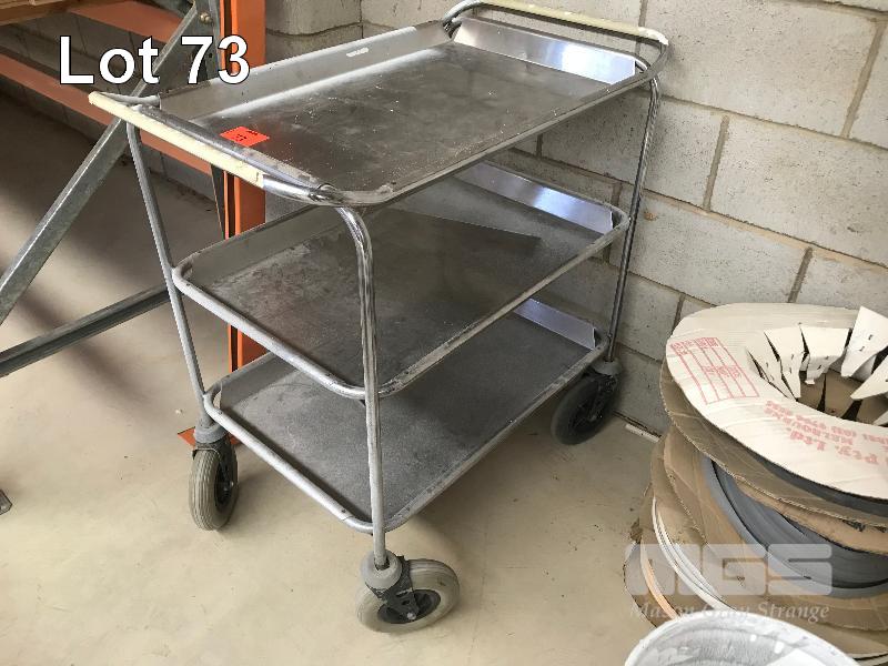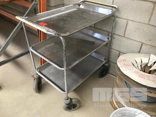 CHROME FRAMED 3 TIER 4 WHEEL TROLLEY, WITH STAINLESS STEEL SHELVES