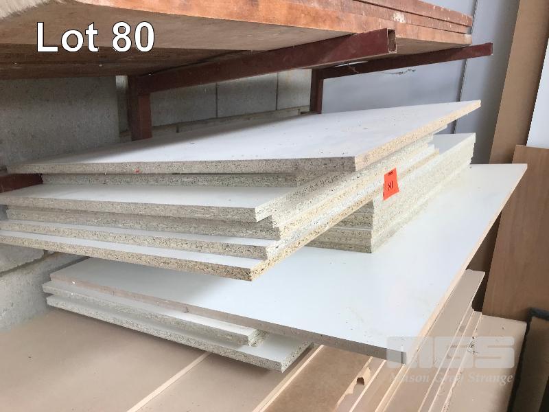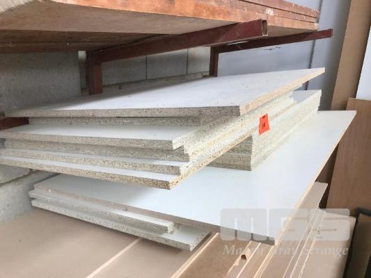 ASSORTED DOUBLE SIDE WHITE LAMINATE PARTICLEBOARD PIECES