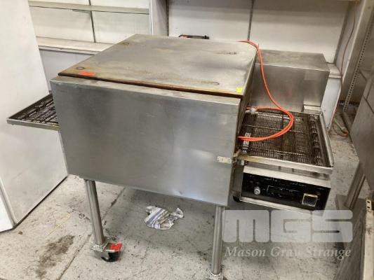 CONVEYOR PIZZA OVEN, 18" STAINLESS STEEL CASED, GAS ON MOBILE STAND