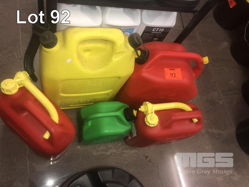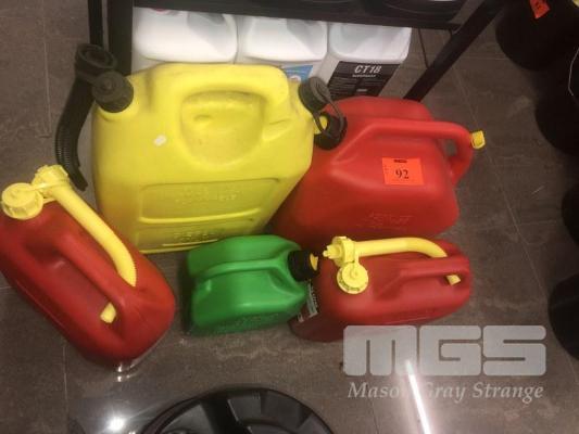 5 x ASSORTED PVC FUEL CONTAINERS, 5-25L