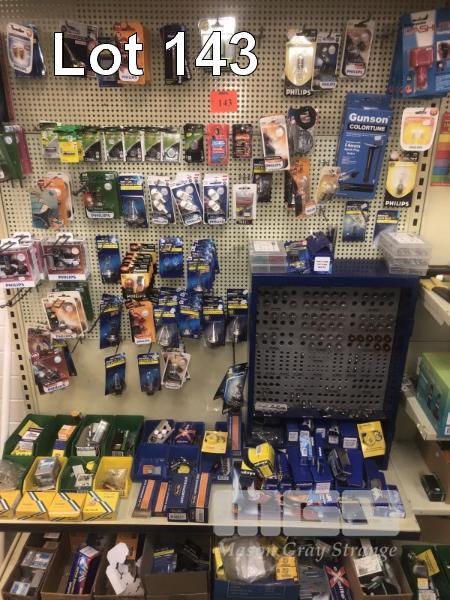 PART SHELF/DISPLAY OF AUTO HALOGEN GLOBES, NARVA GLOBE CABINET, TERMINALS, BATTERIES, ETC