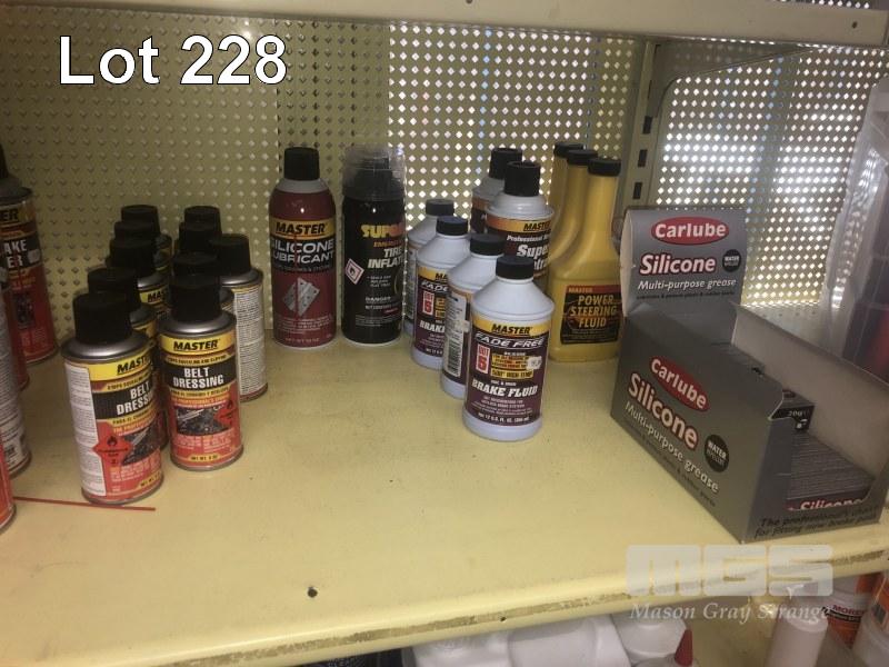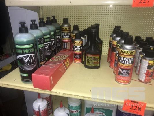 MASTER PRODUCTS, TYRE PATCH, AIR CLEANER, SILICONE GREASE, BRAKE FLUID, POWER STEER, ETC, 1 x SHELF