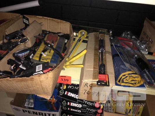 ASSORTED TOOLS, PART SHELF, SOCKET SETS, PULLER, DRIVERS, LRG SOCKETS & MORE