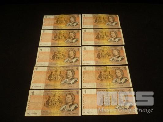 10 X COMMONWEALTH OF AUSTRALIA, $1 PAPER BANKNOTES, PHILLIPS/RANDALL