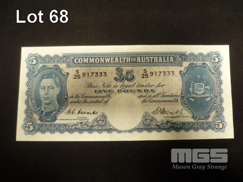 1949, COMMONWEALTH OF AUSTRALIA, 5 POUND BANKNOTE, COOMBS/WATTS, S25 917333 (UNC)