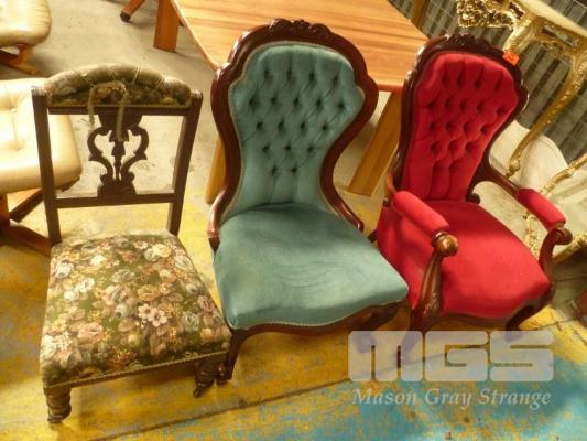 RED VELVET GBRANDFATHER CHAIR. BLUE VELVET GRANDMOTHER CHAIR & READING CHAIR