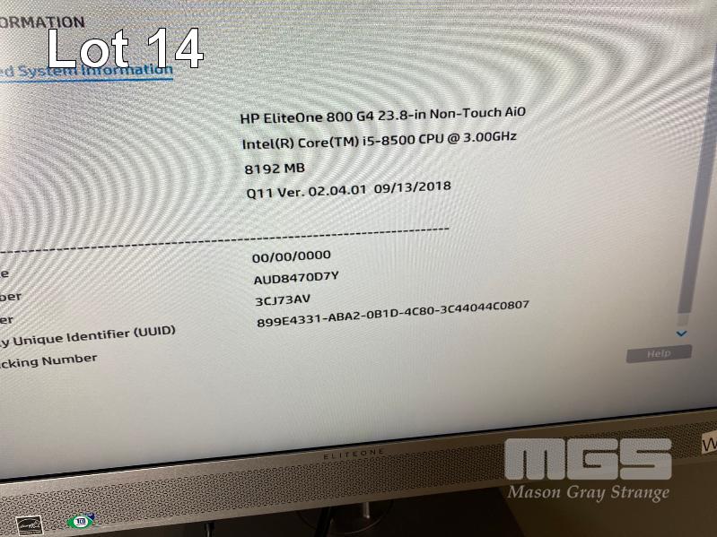 ALL-IN-ONE PC, HP ELITEONE 800 G4 (3CJ73AV), CORE i5 8500 (8TH GEN) @ 3GHz, 8GB DDR4 RAM, 256GB NVMe M.2 SSD, INBUILT 23.8" WIDESCREEN (1920x1080), INTEL UHD GRAPHICS, Wi-Fi, 6 x USB, 1 x USB-C, WINDOWS 10 PRO INSTALLED (NO KEYBOARD, NO MOUSE) S/N:AUD8470D7Y