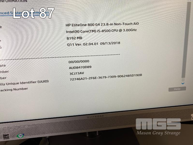 ALL-IN-ONE PC, HP ELITEONE 800 G4 (3CJ73AV), CORE i5 8500 (8TH GEN) @ 3GHz, 8GB DDR4 RAM, 256GB NVMe M.2 SSD, INBUILT 23.8" WIDESCREEN (1920x1080), INTEL UHD GRAPHICS, Wi-Fi, 6 x USB, 1 x USB-C, WINDOWS 10 PRO INSTALLED (NO KEYBOARD, NO MOUSE) S/N:AUD8470D89