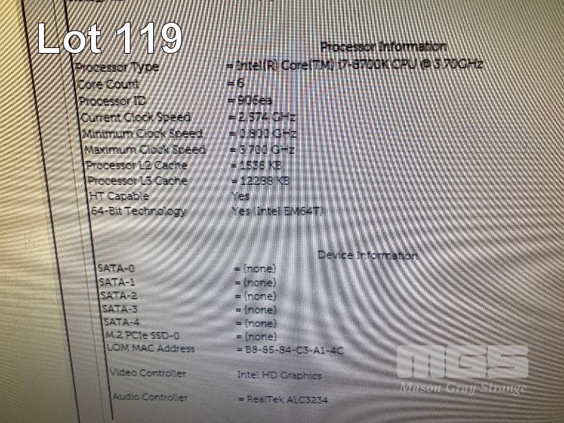MINI-TOWER PC, DELL PRECISION 3630 WORKSTATION, CORE i7 8700K (8TH GEN) @ 3.7GHz, 32GB DDR4 RAM, NO HDD, NO CADDY, 2GB NVIDIA QUADRO P600 VIDEO (4 mDP) (NO KEYBOARD, NO MOUSE, NO POWER CABLE) S/N:34J2WV2