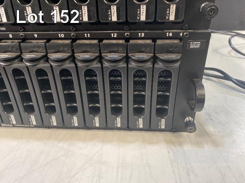 2 x RACKMOUNT STORAGE ARRAYS, DELL POWERVAULT MD1000, EACH 15 x 1TB SATA HDD, 2 x PSU WITH RAILS & CABLES S/N:CJ13Y1S, C25YW1S