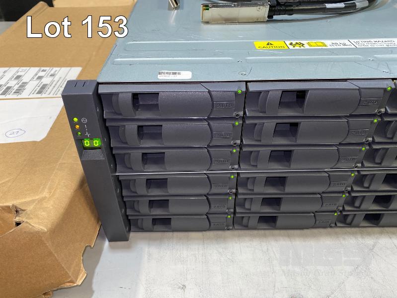 RACKMOUNT STORAGE ARRAY, NETAPP DS4246 NAJ-0801, 4U, 24 x 2TB SATA HDD, 1 x SAS STORAGE CONTROLLER (111-01070+A0 IOM6), 1 x SAS / SFP STORAGE CONTROLLER (111-01287+B0, 111-00846+D0), 2 x 580W PSU WITH RAILS & QSFP CABLES S/N:SHJMS0000001684