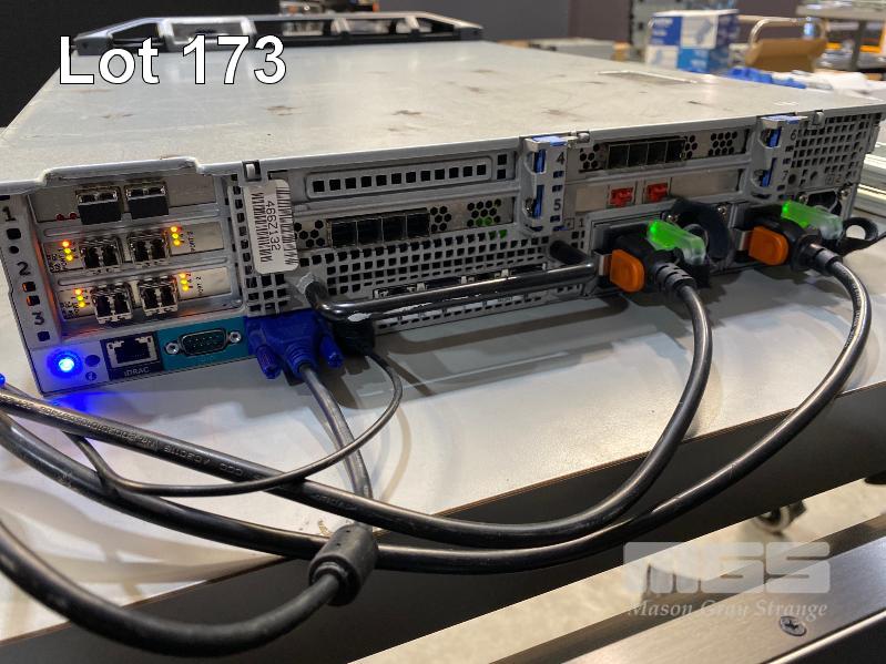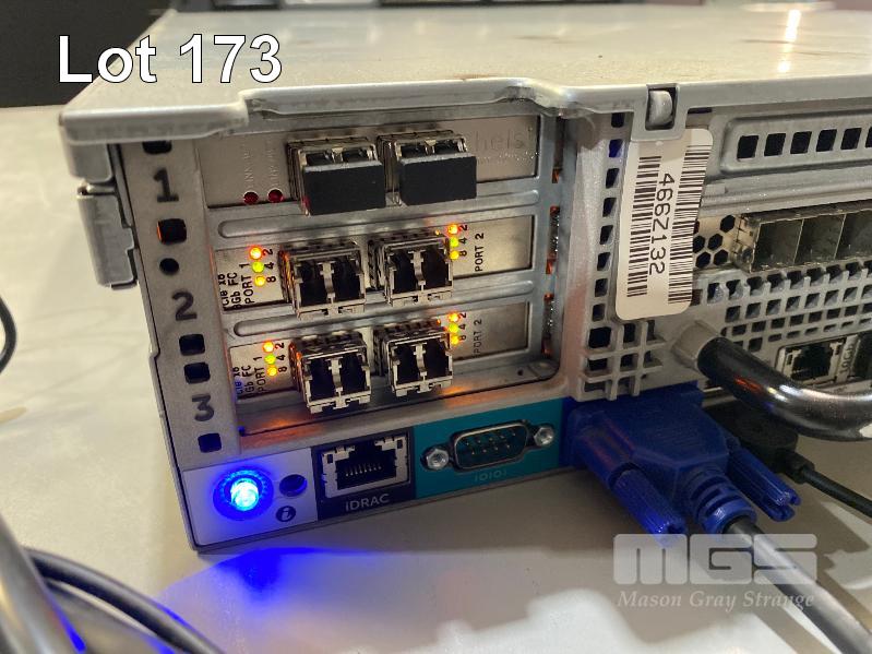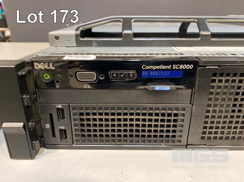 RACKMOUNT STORAGE CENTER CONTROLLER, DELL COMPELLENT SC8000, 2U, 2 x XEON E5-2640 @ 2.5GHz, 64GB ECC DDR3 RAM, NO HDD, 1 x DUAL PORT FIBRE CHANNEL (084FDM), 2 x DUAL PORT FIBRE CHANNEL (QLE2562), 2 x 4-PORT SAS CONTROLLERS (0TFJRW), 1 x 512MB RAID STORAGE CONTROLLER (0DV94N) WITH RAILS & SAS CABLES S/N:466Z132