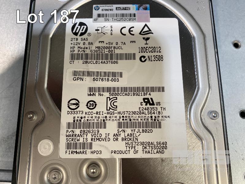 RACKMOUNT STORAGE ARRAY, HP STORAGEWORKS D2600, AJ940A, 12 x 2TB SAS HDD, SAS MODULE WITH RAILS & SAS CABLE S/N:5C7246P0S3