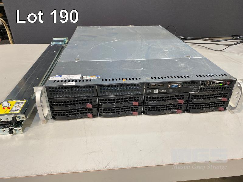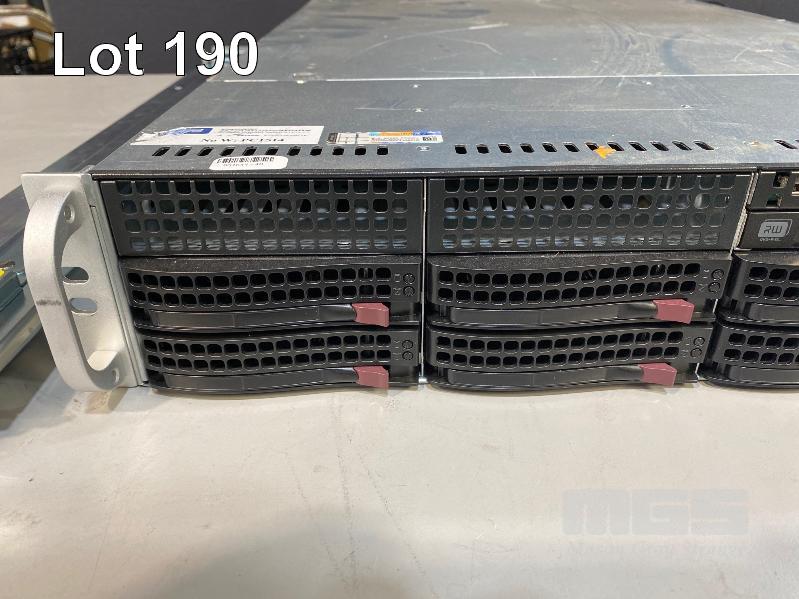 RACKMOUNT SERVER, SUPERMICRO, 2U, 2 x XEON E5-2609 v2 @ 2.5GHz, 32GB ECC DDR3 RAM, 2 x 500GB SATA HDD, DVD-RW, QLE2562 FIBRE CHANNEL, SINGLE PSU WITH RAILS
